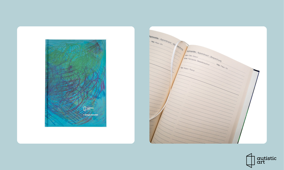 Stadtmüller Tamás nonfiguratív grafikái díszítik a noteszt, ami végigkíséri az évedet, sőt még ajándékba is adhatsz. Az eredeti műve pedig időtlenséget hoz az enteriőrödbe. Minden autista alkotást keretezve adunk át. Grafika méret: 51x36 cm 3 darab B5 méretű tárgyalási napló chamois színű belívvel, cérnavarrott kivitelben, könyvjelző szalaggal Becsérték: 190 000 Ft