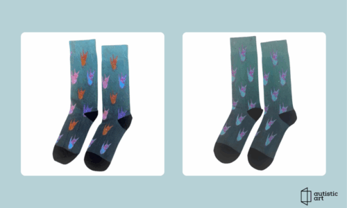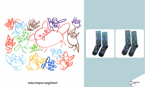 04. Zoltán Gábor autista fiatal grafikája és 1 pár női és 1 pár férfi zokni