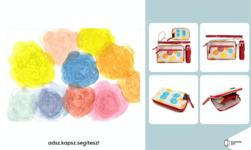 Kalocsai Nóra vidám képei és Enihorn egyedi tervezésű táskái tökéletes kiegészítői mind az öltözetnek, mind a belső tereknek. Minden autista alkotást keretezve adunk át. Grafika mérete: 36x25,5 cm ENIHORN színes, virágos NORI táska mérete: 21 x 13,5 x 5 cm ENIHORN színes, virágos NORI pénztárca mérete: 14,5 x 10 x 2 cm Becsérték: 240 000…