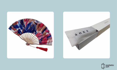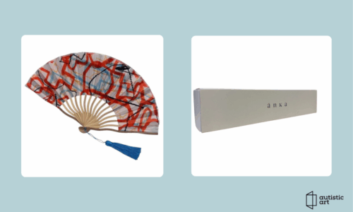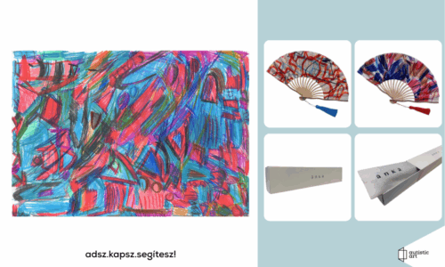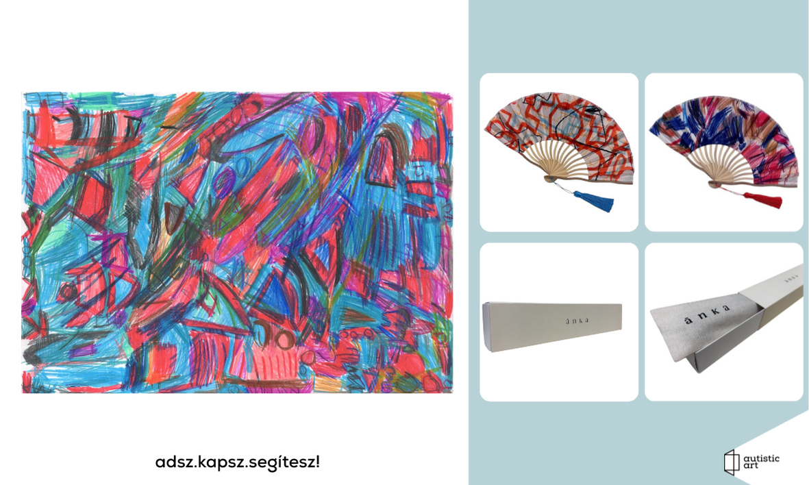 12. Bálizs Mihály autista fiatal grafikája és 2 darab Autistic Art legyező